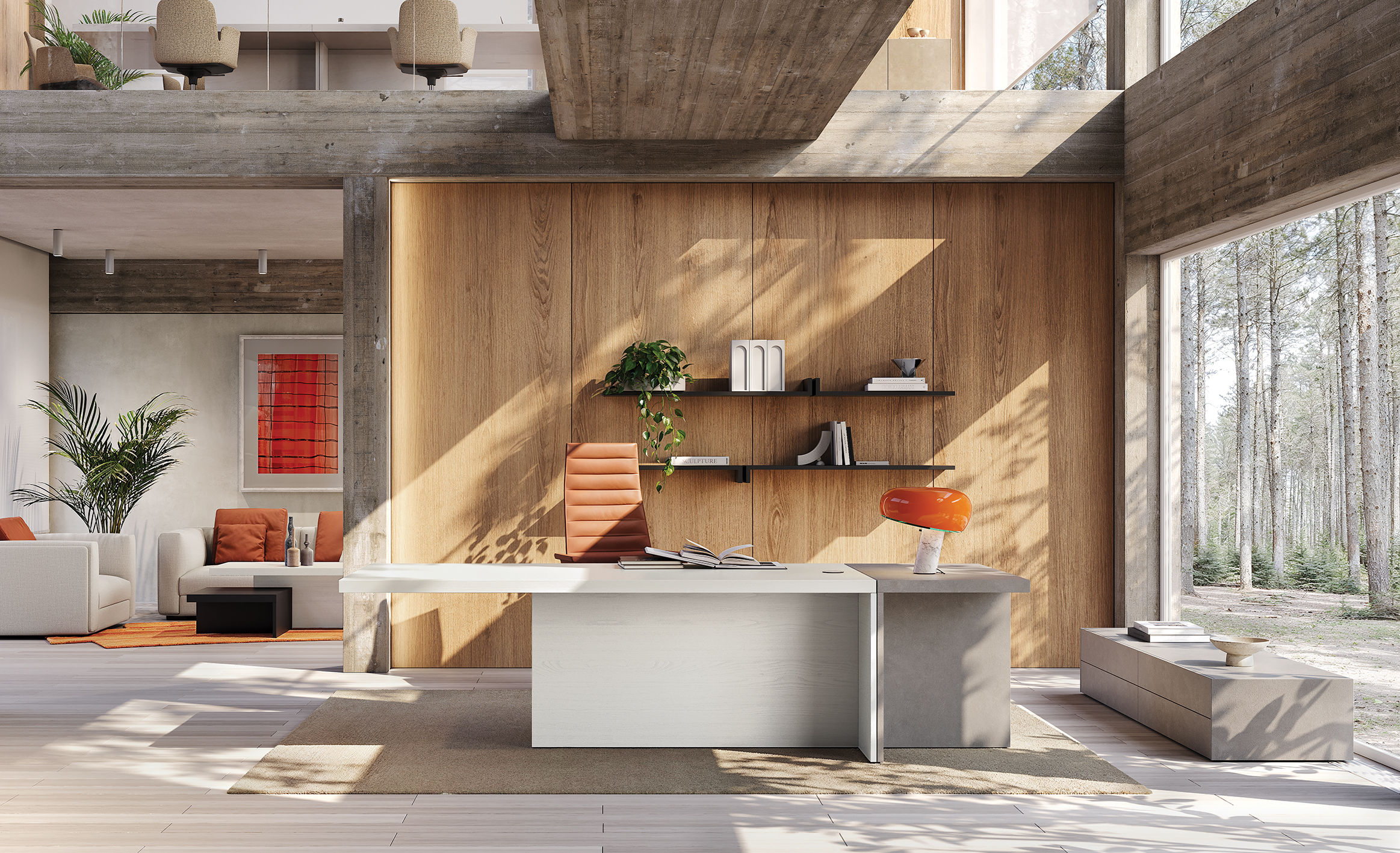 Des plateaux retour latérales pratiques, des tiroirs sous le plateau, des tiroirs suspendus, des éléments de service, des armoires et des jardinières deviennent des accessoires indispensables pour ranger l’équipement personnel, permettant aux managers du Millénaire de créer une véritable oasis qui englobe les concepts de confort et de bien-être psychophysique sur le lieu de travail.