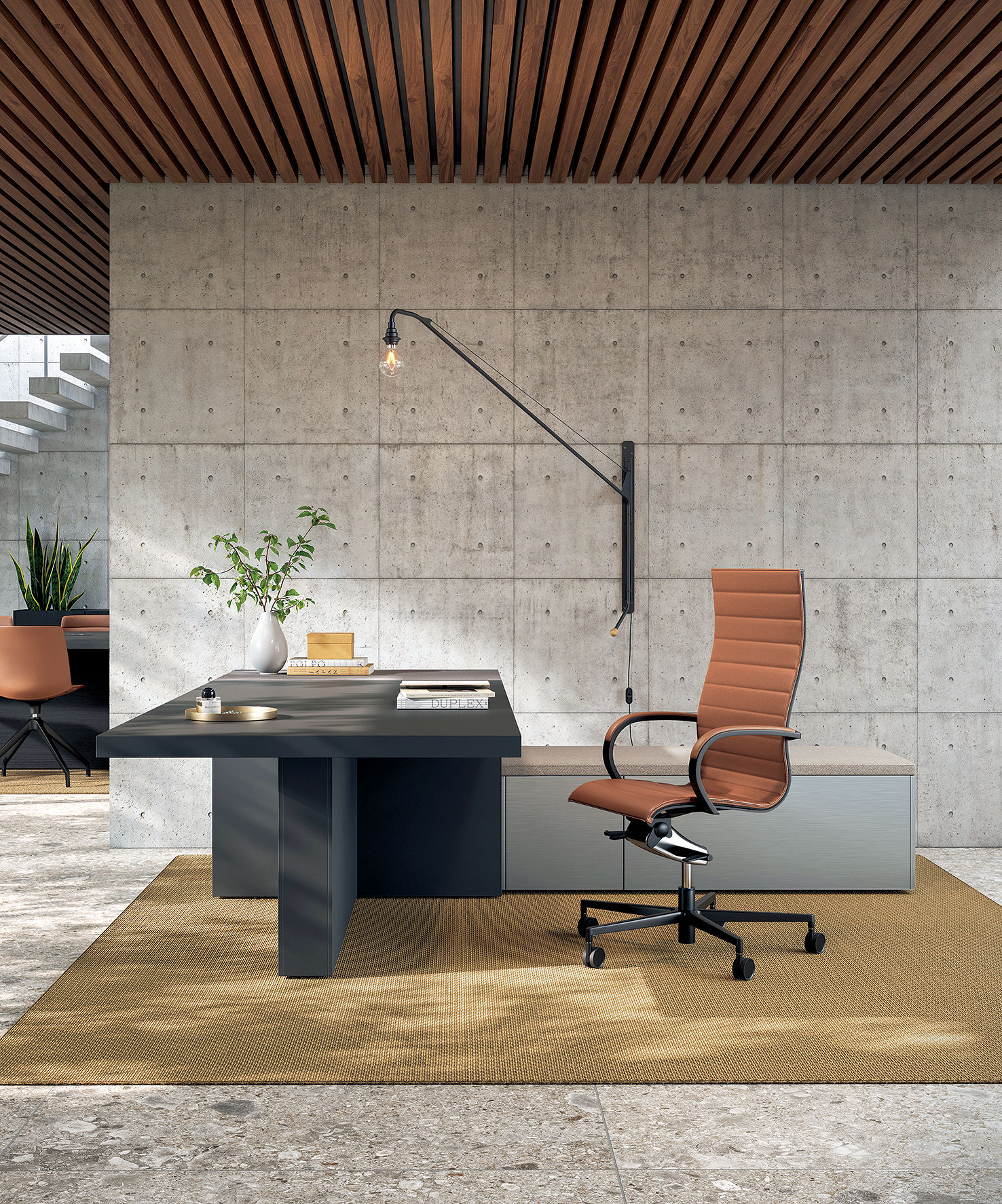L’esprit majestueux et raffiné du bureau présidentiel Mux70 est contrebalancé par son extrême fonctionnalité et sa personnalisation.