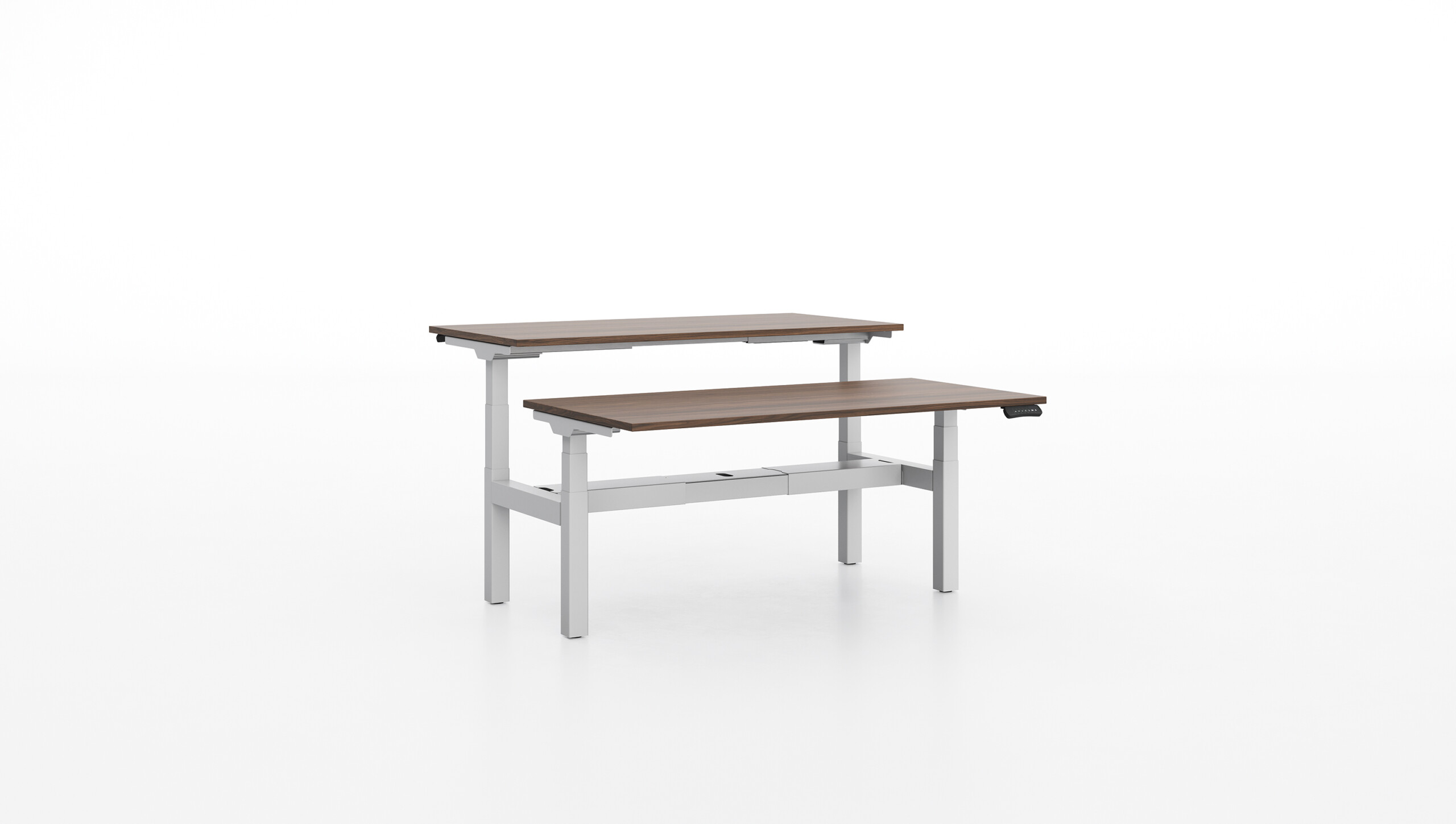 Grâce à son panneau de commande discret sous le bureau, il est possible de mémoriser jusqu’à 4 positions pour passer facilement du travail assis au travail debout. Ce système favorise la flexibilité ergonomique, améliore la concentration et augmente la productivité au quotidien.