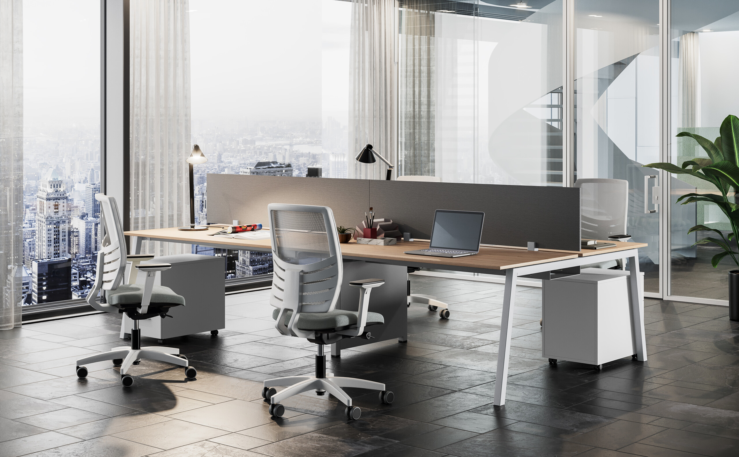 L’installation de paravents et panneaux de fond garantit l’intimité nécessaire pour favoriser la concentration et le bien-être au travail, tout en maintenant une circulation fluide dans l’espace.